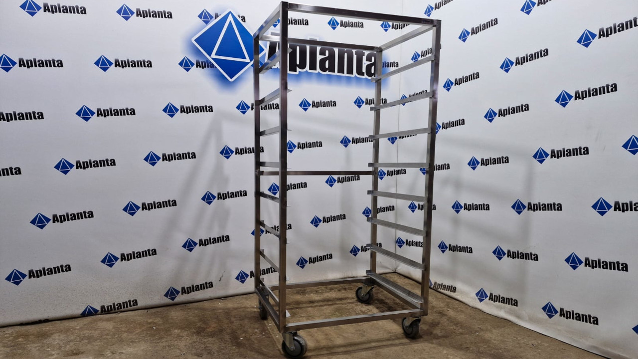 Сварная конструкция металлического стеллажа включает в себя полки из нержавеющей пищевой стали AISI 201, прочный каркас из профильной трубы, восемь направляющих и поворотные колеса диаметром 80 мм (два колеса с тормозным устройством, два – без фиксатора), облегчающие процесс транспортировки стеллажа. Параметры и комплектация изделия обговариваются с заказчиком в индивидуальном порядке.