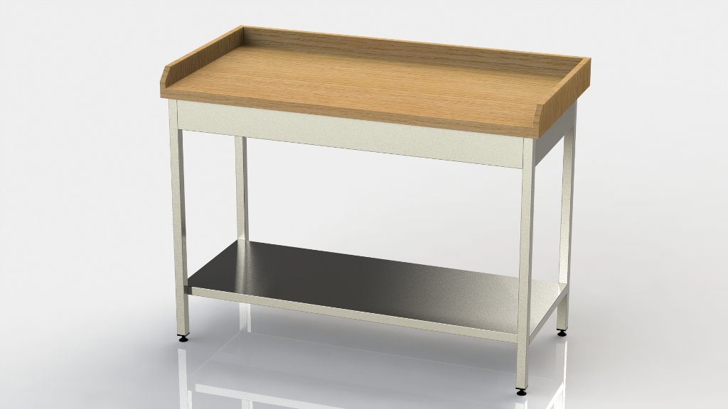 Стол для мучных работ с полкой – это необходимое оборудование для профессиональных кухонь, пекарен, кондитерских и других заведений, где требуется интенсивная работа с тестом и мукой. Изготовленный из высококачественной нержавеющей стали, этот стол обеспечивает долговечность, прочность и стойкость к коррозии. Столешница из пищевой нержавеющей стали покрыта влагостойкой фанерой с каркасом из сосновых брусьев, толщина которой составляет 12 мм. Три деревянных бортика препятствуют падению продуктов на пол. Дополнительная 30-милиметровая полка, укрепленная по длине внутренним профилем, размещена под столешницей.
