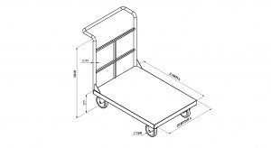 Надёжность цельной сварной конструкции изделия достигается крепким каркасом из профильной трубы размером 30*30 мм. Полка грузовой тележки сделана из стального листа с полимерным покрытием. Поворотные колеса обеспечивают легкую маневренность изделия. Половина колес оснащена тормозным устройством, вторая половина без тормоза. Высота тележки стандартна – 1030 мм. Размер грузовой платформы выбирается заказчиком.