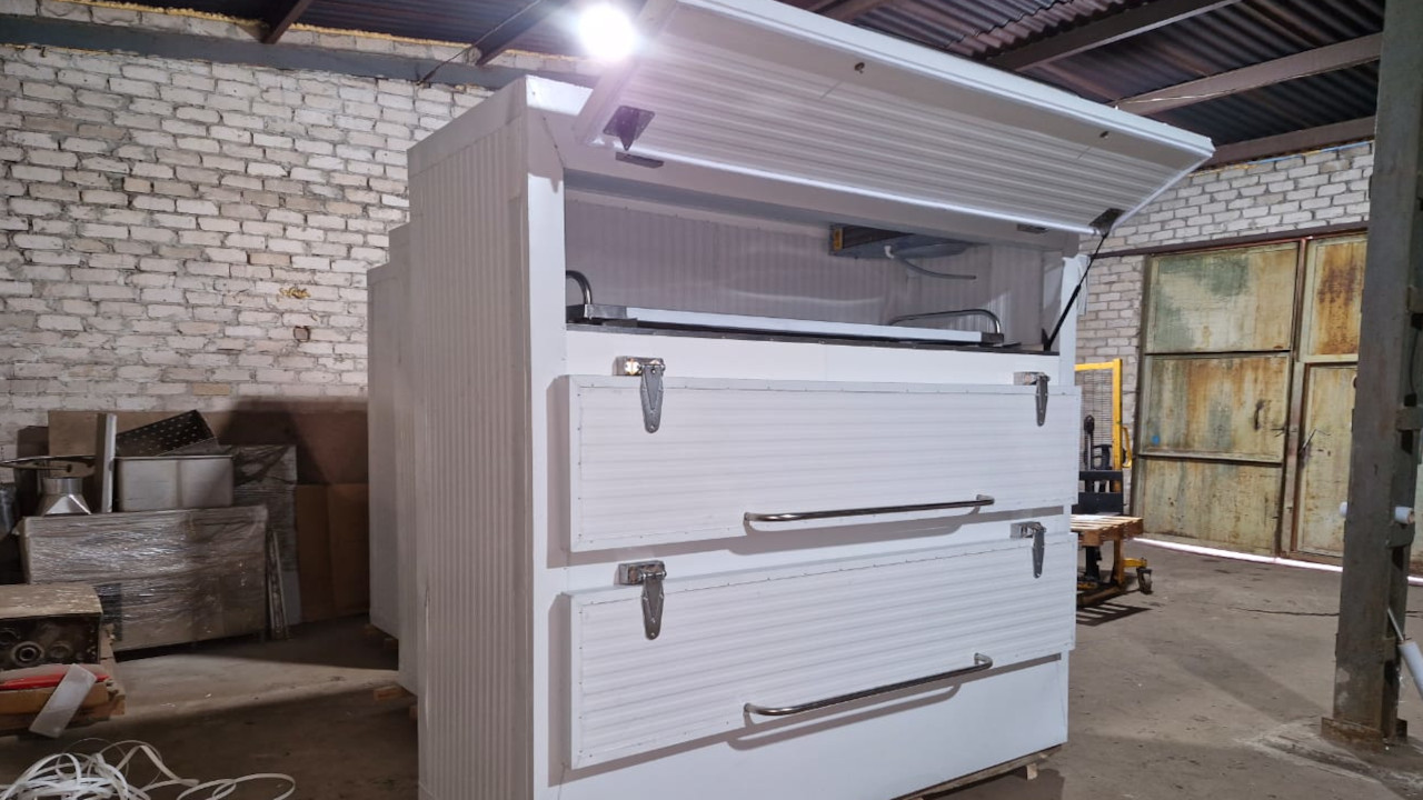 Бічна тримісна холодильна камера для моргу функціонує в температурних рамках від +8 до +2 градусів за Цельсієм. Управління температурним режимом відбувається через пульт на базі мікропроцесора. Обсяг тримісної камери становить 4,8 куб. метра. Ширина пристрою стандартна – 915 мм, висота 2300 мм.