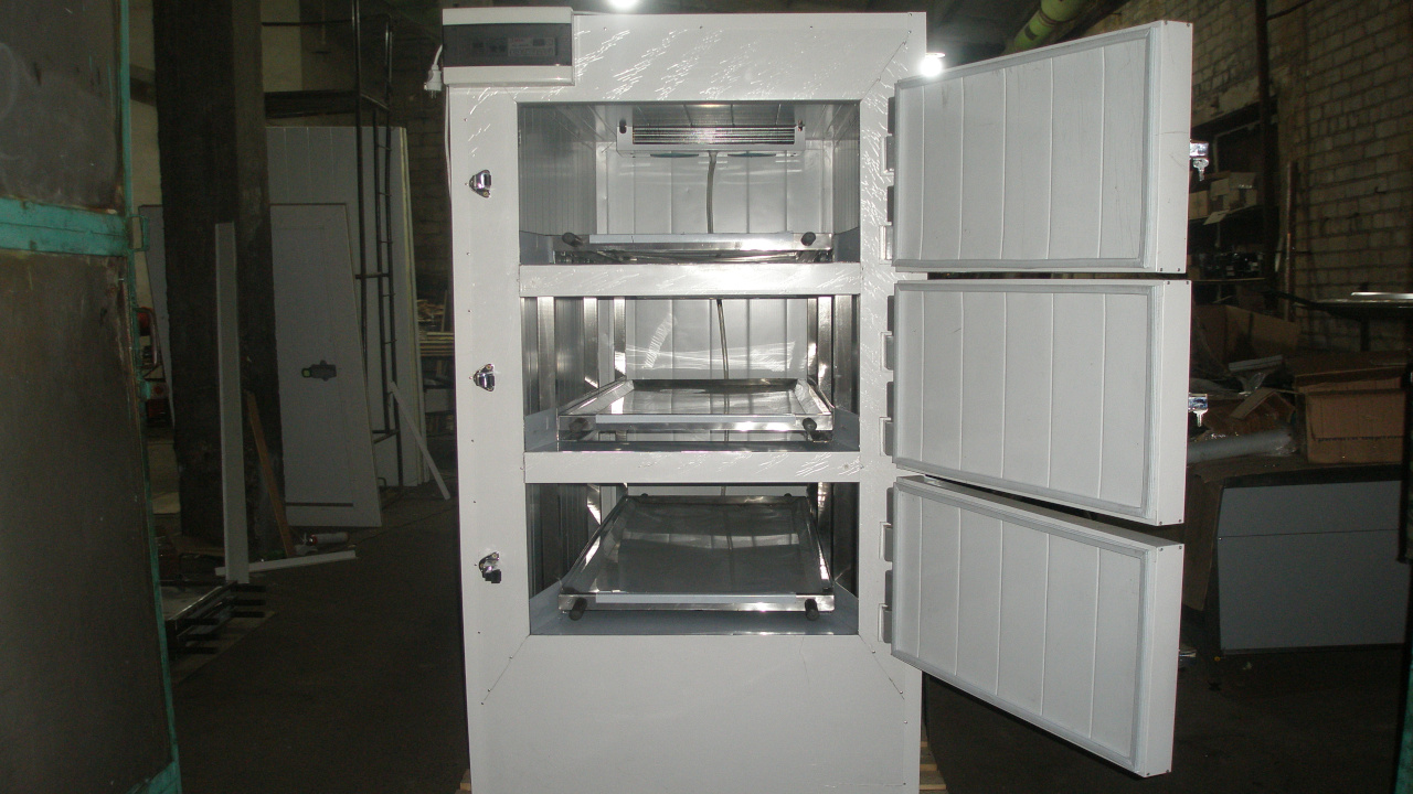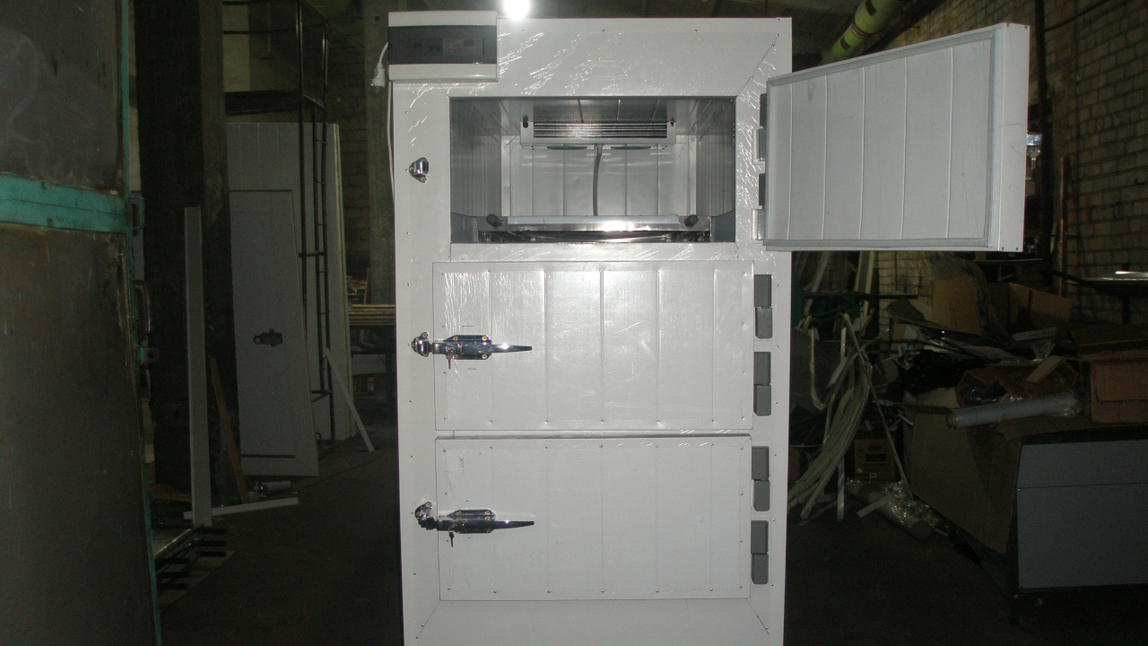 Тримісна фронтальна холодильна камера для моргу забезпечує підтримку температури від +2 за Цельсієм градусів до +8. Ширина агрегату становить 875 мм, висота – 2120 мм. Обсяг холодильної камери – 4,4 кубічних метра.