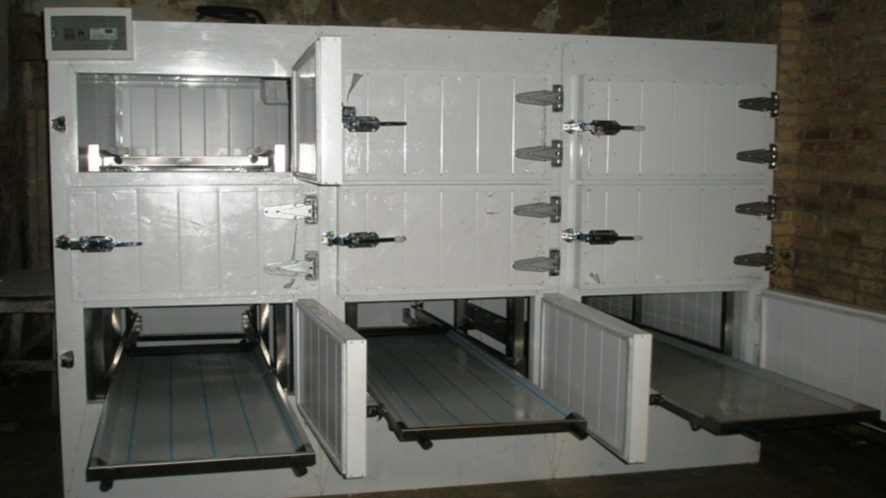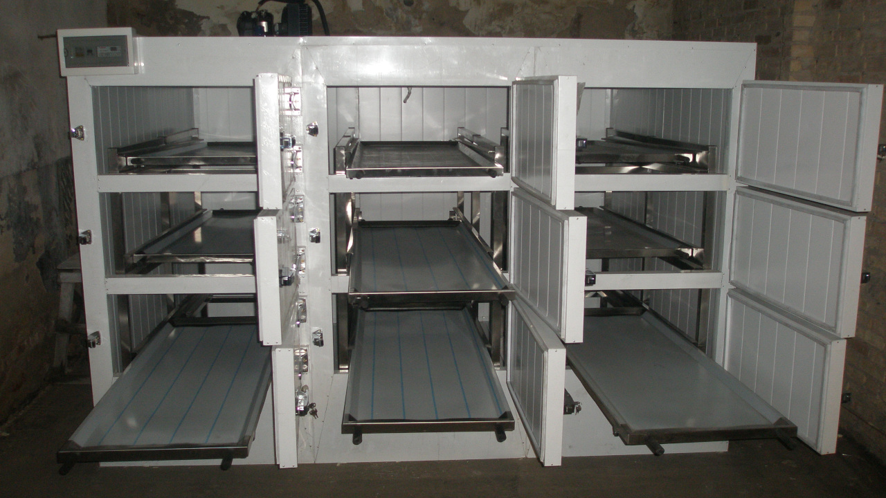 Камера виконана у вигляді модульної конструкції з дев'ятьма індивідуальними осередками, розташованими в три рівні. Кожне місце оснащене висувним лотком (каталкою) з нержавіючої сталі, стійкою до корозії, вологи та агресивним дезінфікуючим засобам. Двері камер герметичні, оснащені надійними замками та ущільнювачами.