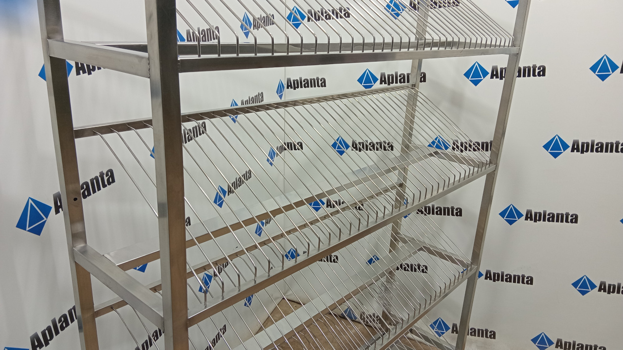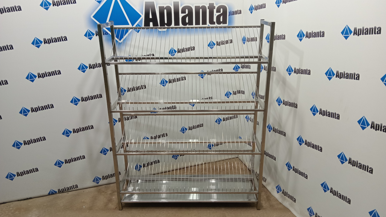 Стелаж виготовлений з високоякісної нержавіючої сталі, стійкої до корозії, вологи та впливу миючих та дезінфікуючих засобів. Міцна та стійка конструкція розрахована на інтенсивну експлуатацію. Відкрита система зберігання забезпечує гарну вентиляцію та швидке висихання підносів та деко.