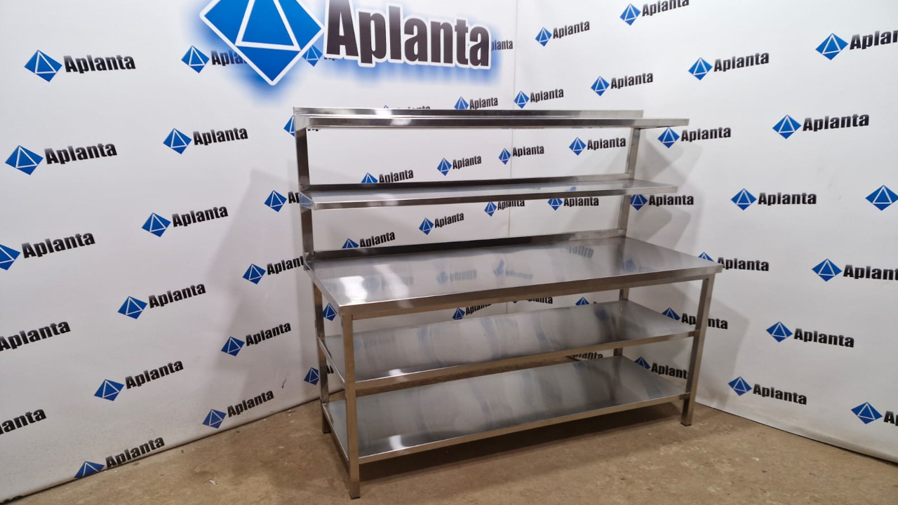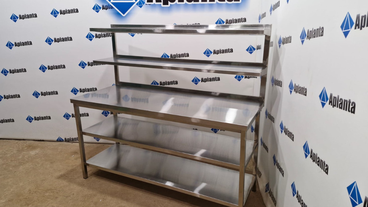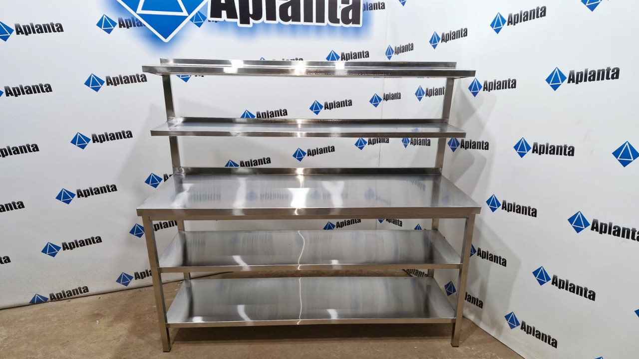 Стіл виробничий з двома полицями та двома додатковими полицями – це відмінне рішення для професійних кухонь, ресторанів, їдалень та інших закладів громадського харчування, де важливо оптимізувати робочий простір та забезпечити зручність зберігання.Є елементом ліній роздачі. Крім стільниці з нержавіючої сталі AISI 201 та каркасу з профільної труби, конструкція обробного столу доповнена двома нижніми полицями та двома верхніми. Нижні полиці обробного столу укріплені внутрішнім профілем. Верхні полиці надбудови виготовлені з нержавіючої сталі.