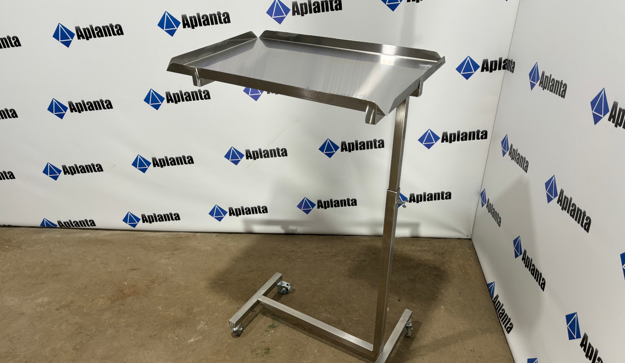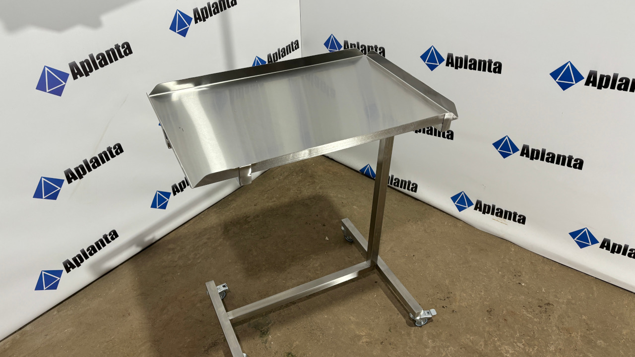 Каркас та робоча поверхня виконані з нержавіючої сталі, стійкої до корозії, вологи та дії дезінфікуючих засобів. Регулювання по висоті дозволяє легко адаптувати столик під специфіку процедур, що виконуються, забезпечуючи максимальний комфорт у роботі.
