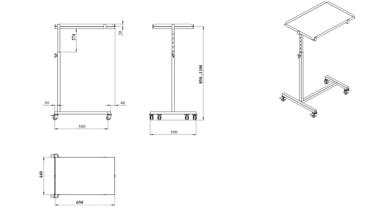 Столик оснащений маневреними колесами з фіксаторами, що забезпечує легке переміщення та надійну фіксацію у робочому положенні. Підходить для використання у лікарнях, клініках, процедурних та операційних кабінетах, стоматологіях та лабораторіях.